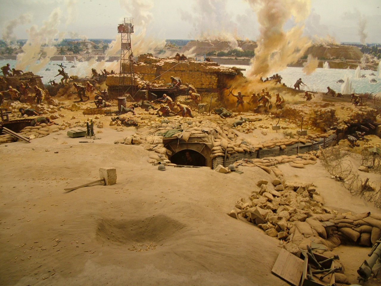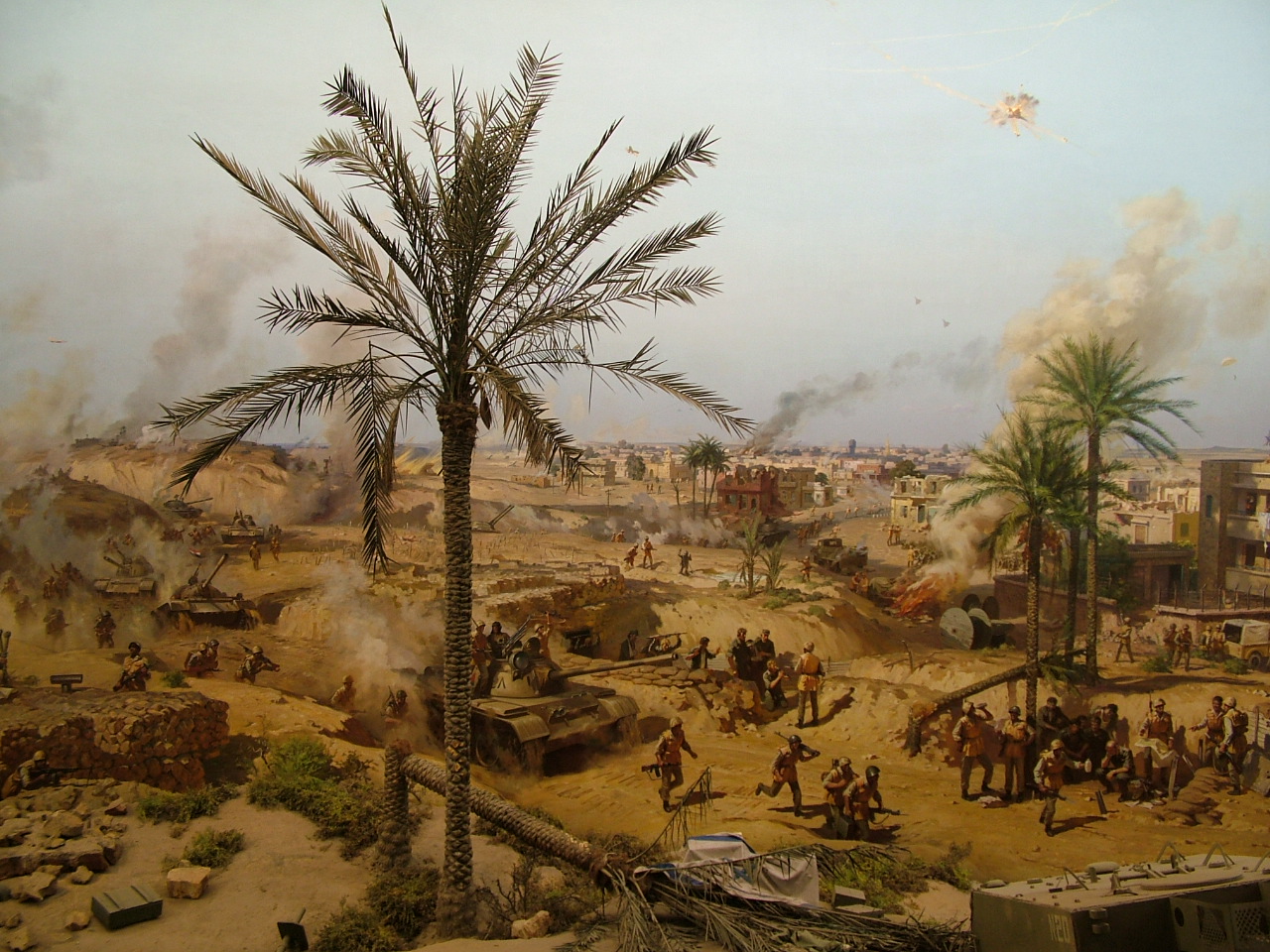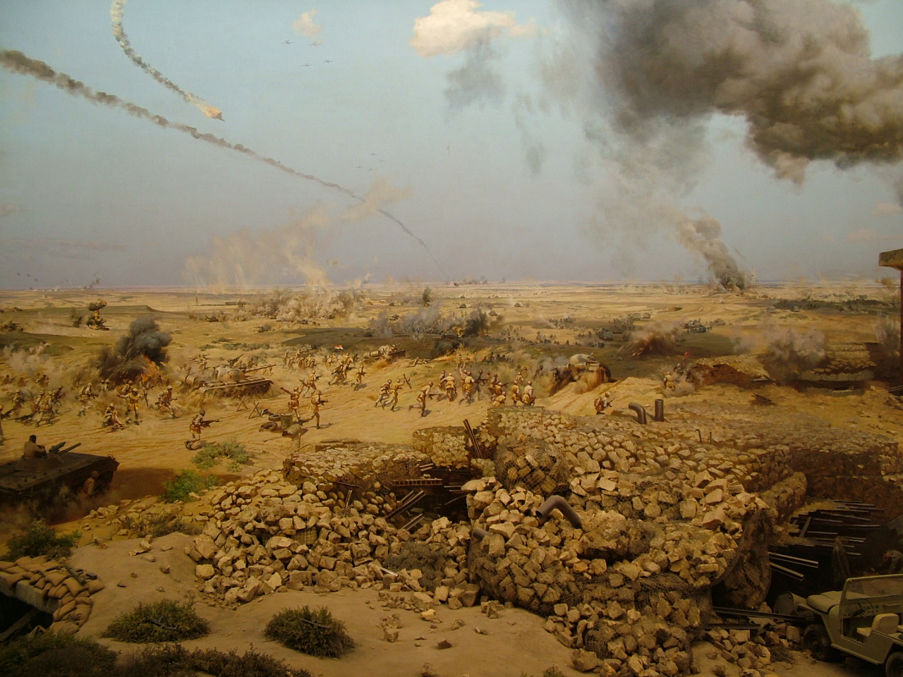 Фото из диорамы в Каире. Так начиналось (штурм линии Бар-Лева на Синае). Кое какая техника так и осталась на местах битв -